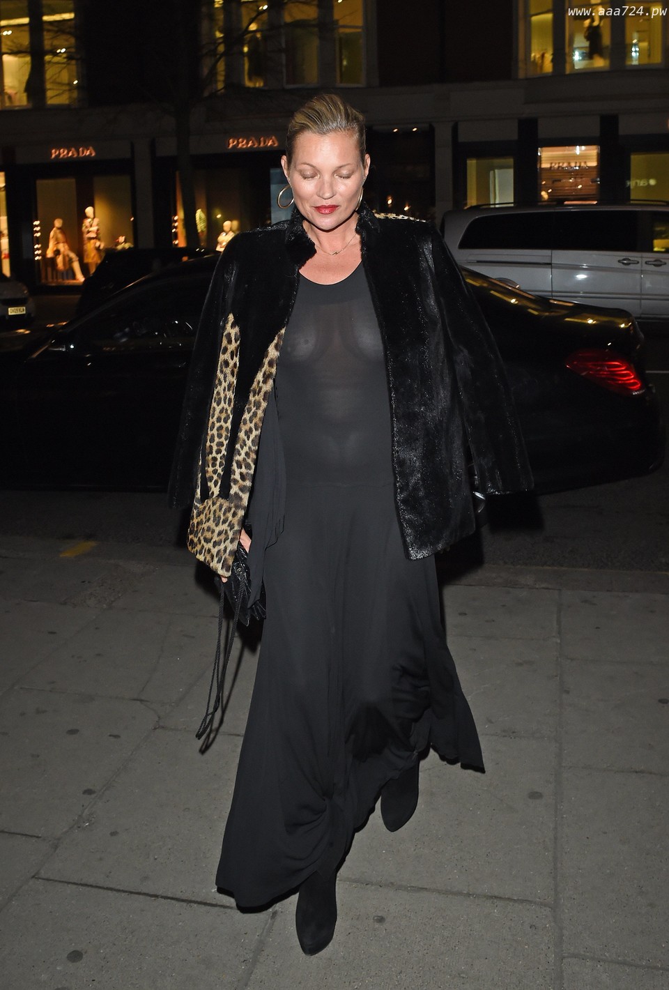 凯特·莫斯在伦敦穿着黑色的连衣裙
